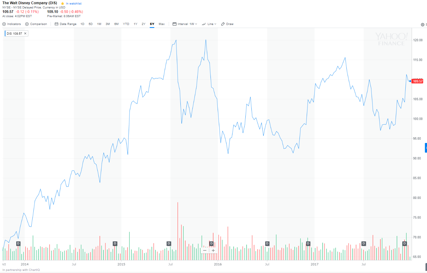 今回は、ウォルト・ディズニー・カンパニーの株価の推移と、損益分岐点を見てみます。