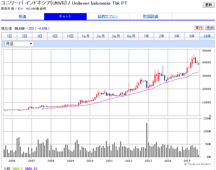 ユニリーバインドネシアUnilever Indonesia Tbk. (UNVR.JK)は、ユニリーバのインドネシア法人です。業態は、生活用品から食品と様々で、世界同一ブランドをインドネシアでも展開しています。インドネシアには古くから進出していますので、現地の商習慣やノウハウも積み上げており、インドネシアでは大きいシェアを維持しています。