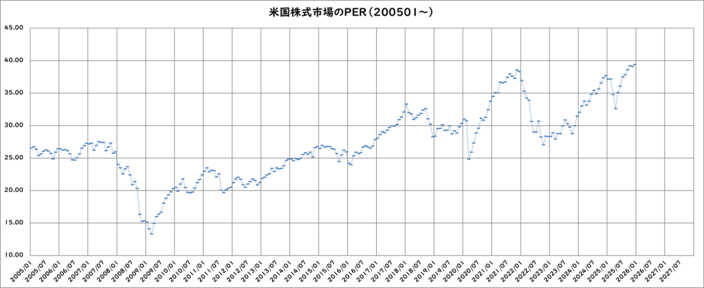 米国株式市場PER Robert James Shiller PER(2025/12/15更新)