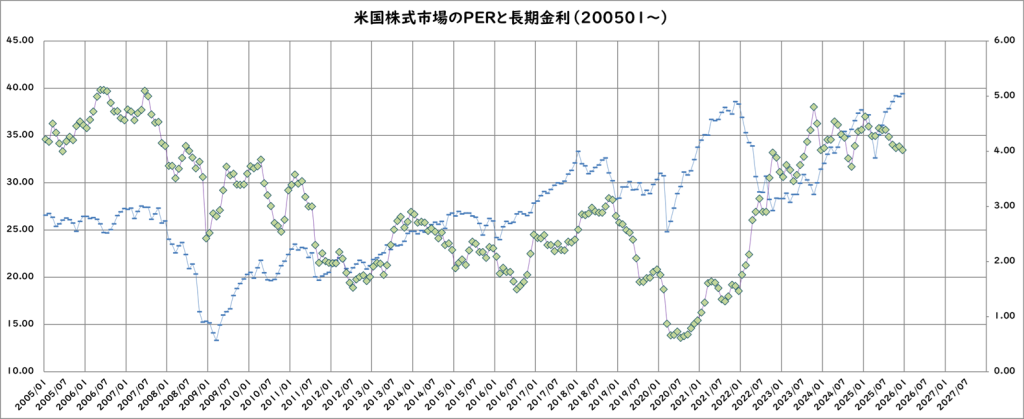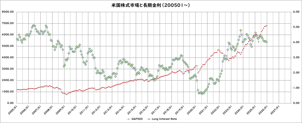 米国株式市場と長期金利(2025/12/31更新)