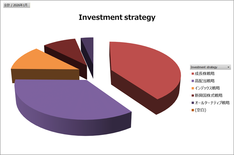 成長株戦略、高配当戦略、インデックス戦略と、戦略的な割合はまあまあバランスが取れています。
